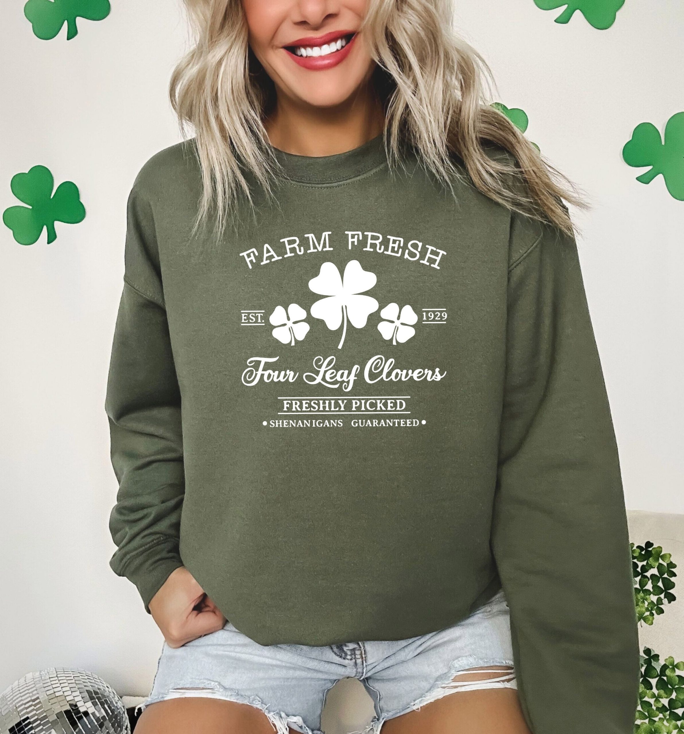 Farm Fresh Four Leaf Clovers Sweatshirt, St Patricks Day Sweater, Shamrock Tee, Saint Patrick’s Day Gift, Irish Tshirt, Lucky Sweatshirt