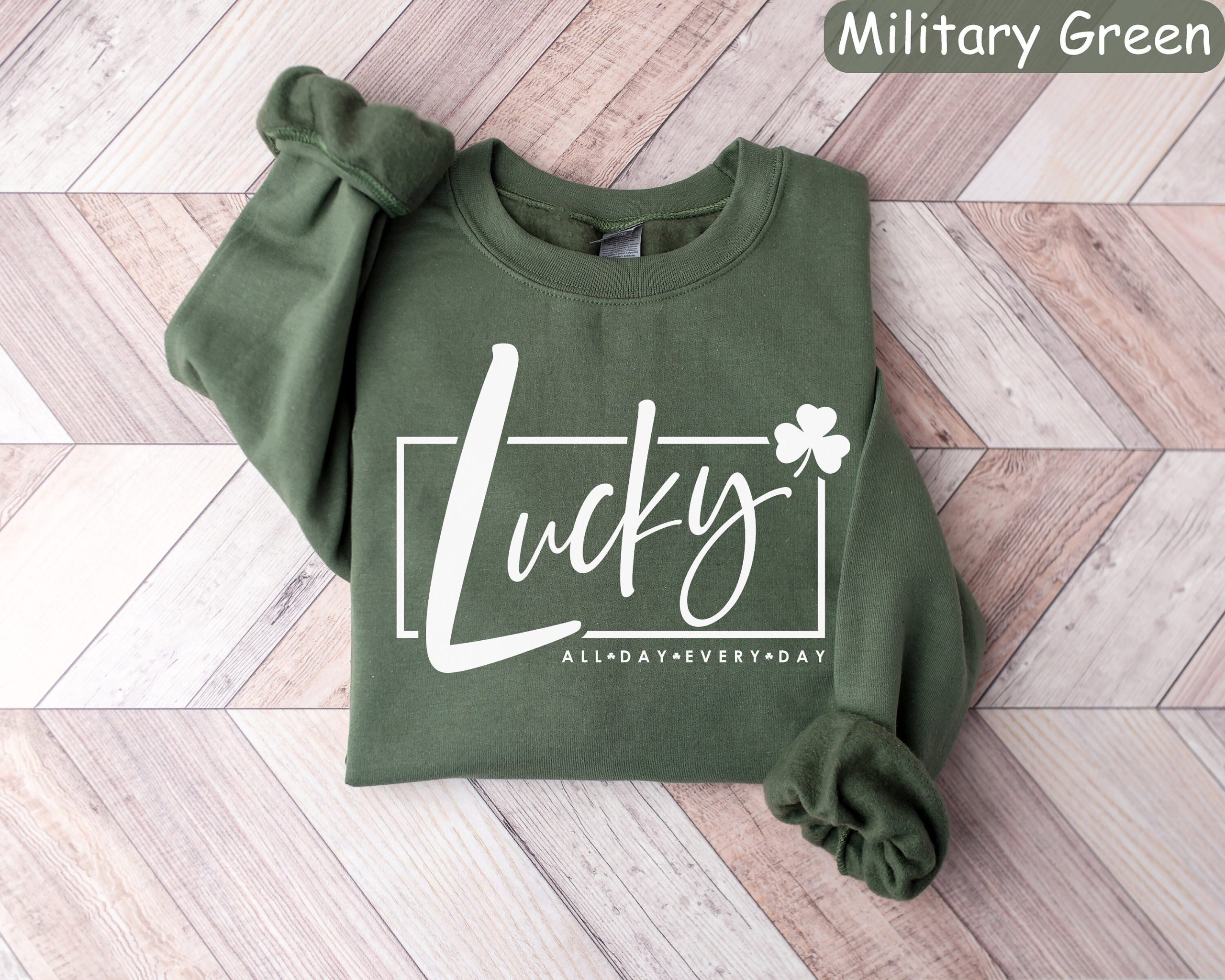 Lucky Sweatshirt, Shamrock Shirt Women, St Patricks Day Sweater, St Paddys Day Shirt, Four Leaf Clover, Saint Patricks Day Gift, Irish Shirt