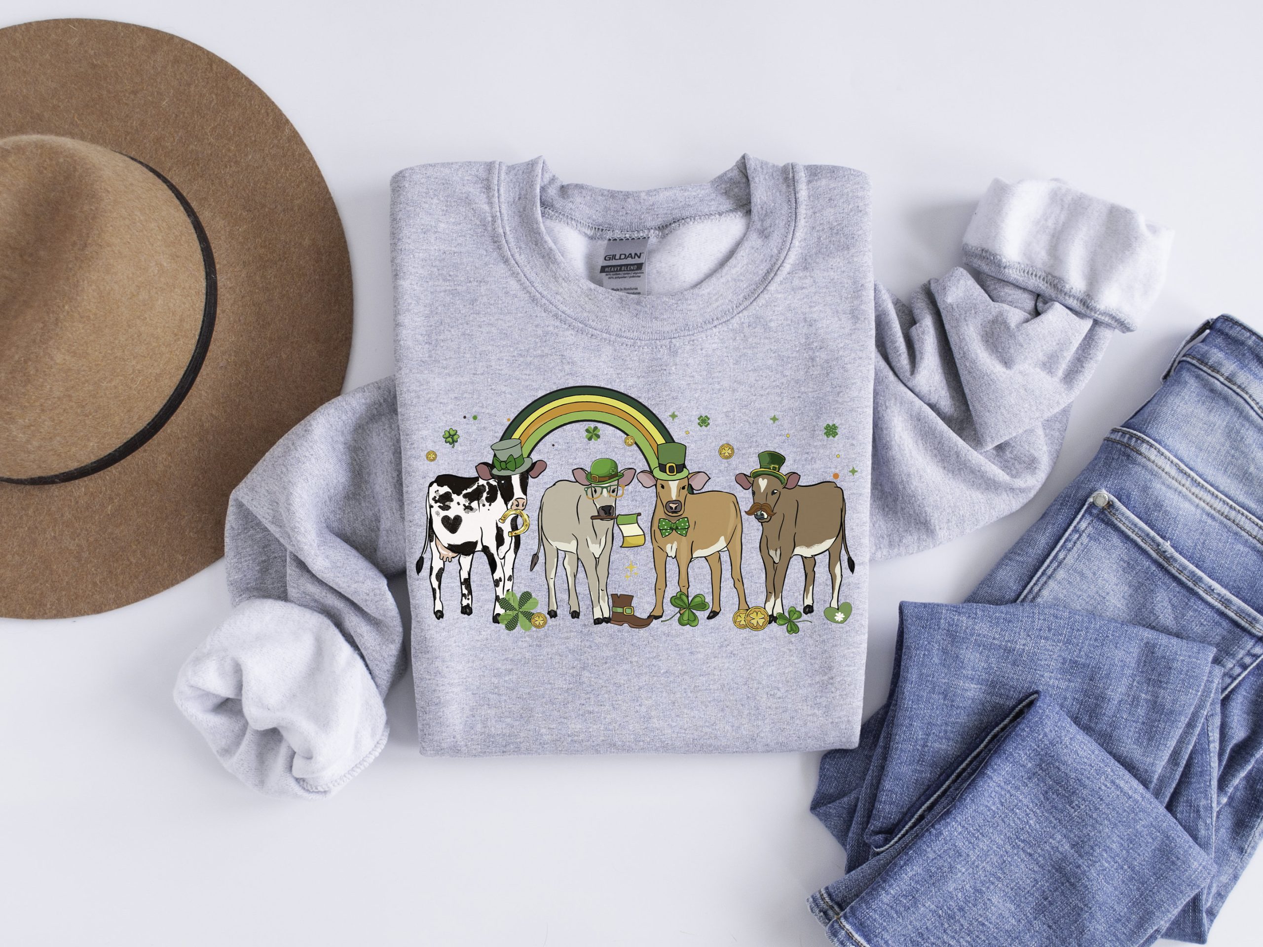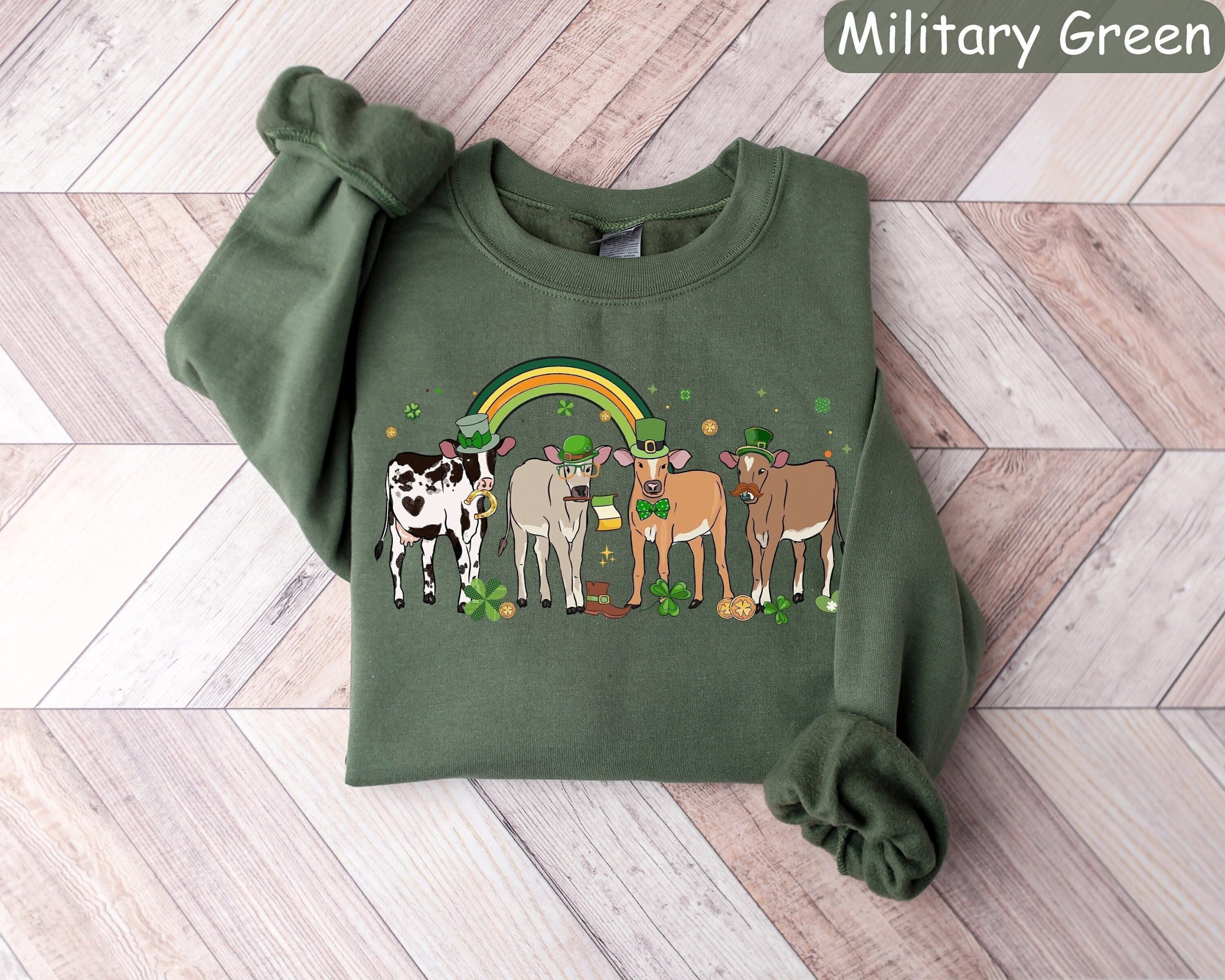 St Patricks Day Cow Sweatshirt, Funny St Patricks Day Shirt, Lucky Cow Shirt, Irish Sweater, Cow Lover Gift, Shamrock Cow Shirt, Cow Sweater