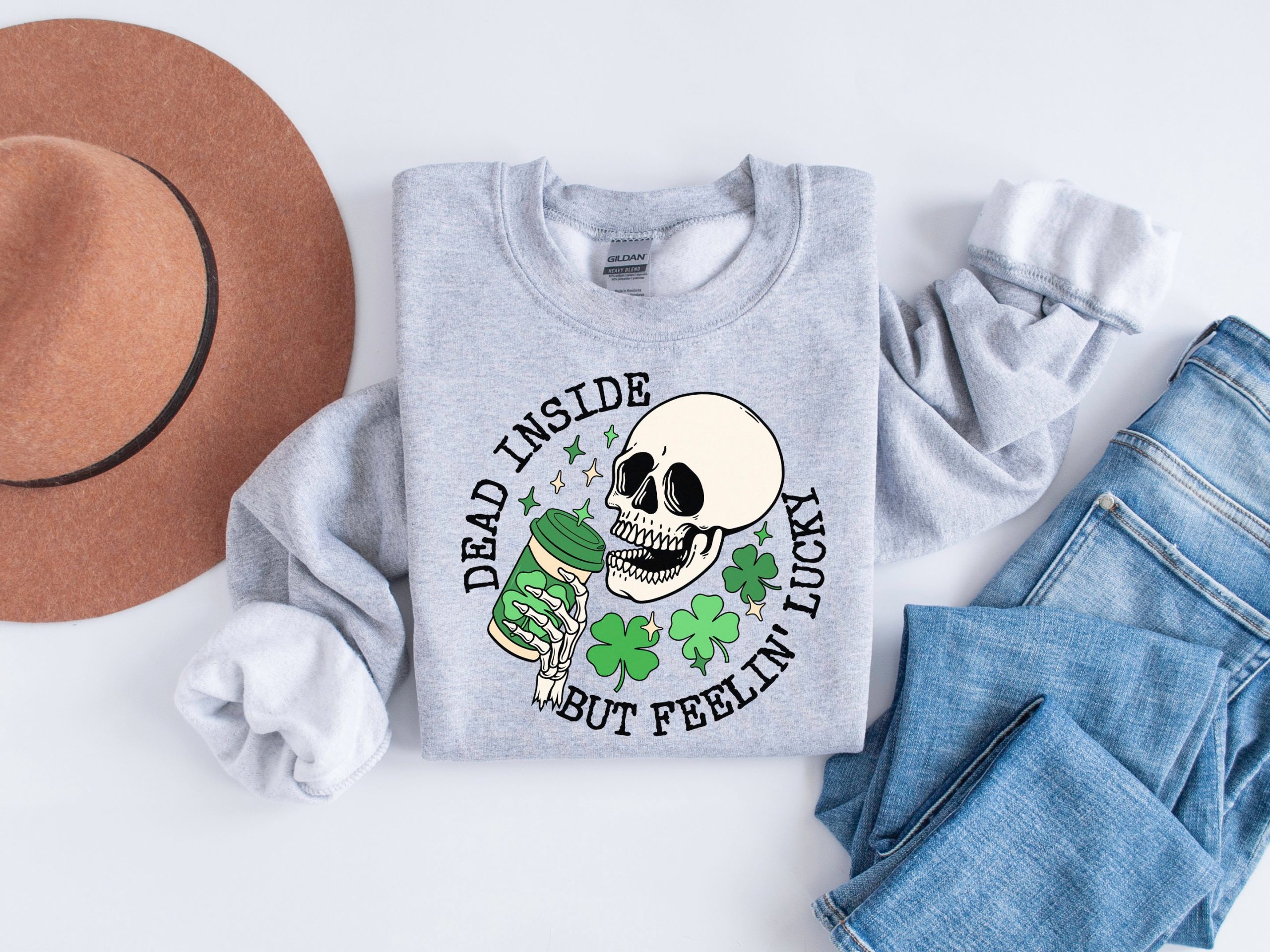 St Patricks Day Sweatshirt, Lucky Skeleton Shirt, Feeling Lucky Skeleton Sweatshirt, Irish Skeleton Shirt, St Patrick’s Day Gift, Clover Tee